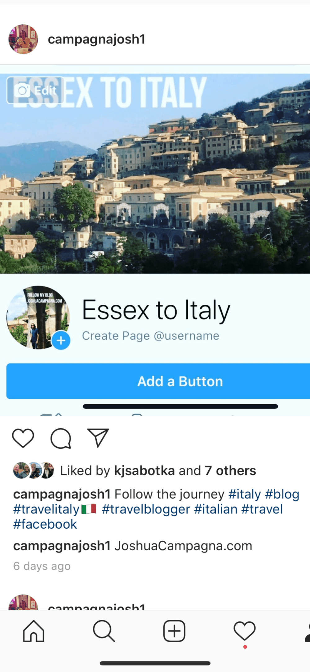 Lifestyle & Travel Instagram: Essex to Italy Posted by Joshuacampagna on December 29, 2019 Pictures say a 1000 words so follow the journey on Instagram ๐ธ @campagnajosh1 Food & Drink ๐ด๐ท Travel โ๏ธ Culture and art ๐ผ People and experiences ๐ฎ๐นโ Growing and learning along the way. Click to share on Telegram (Opens in new window) Telegram Click to share on WhatsApp (Opens in new window) WhatsApp Click to share on LinkedIn (Opens in new window) LinkedIn Click to share on Pinterest (Opens in new window) Pinterest Click to email a link to a friend (Opens in new window) Email More Click to share on Facebook (Opens in new window) Facebook Click to share on X (Opens in new window) X Like Loading...