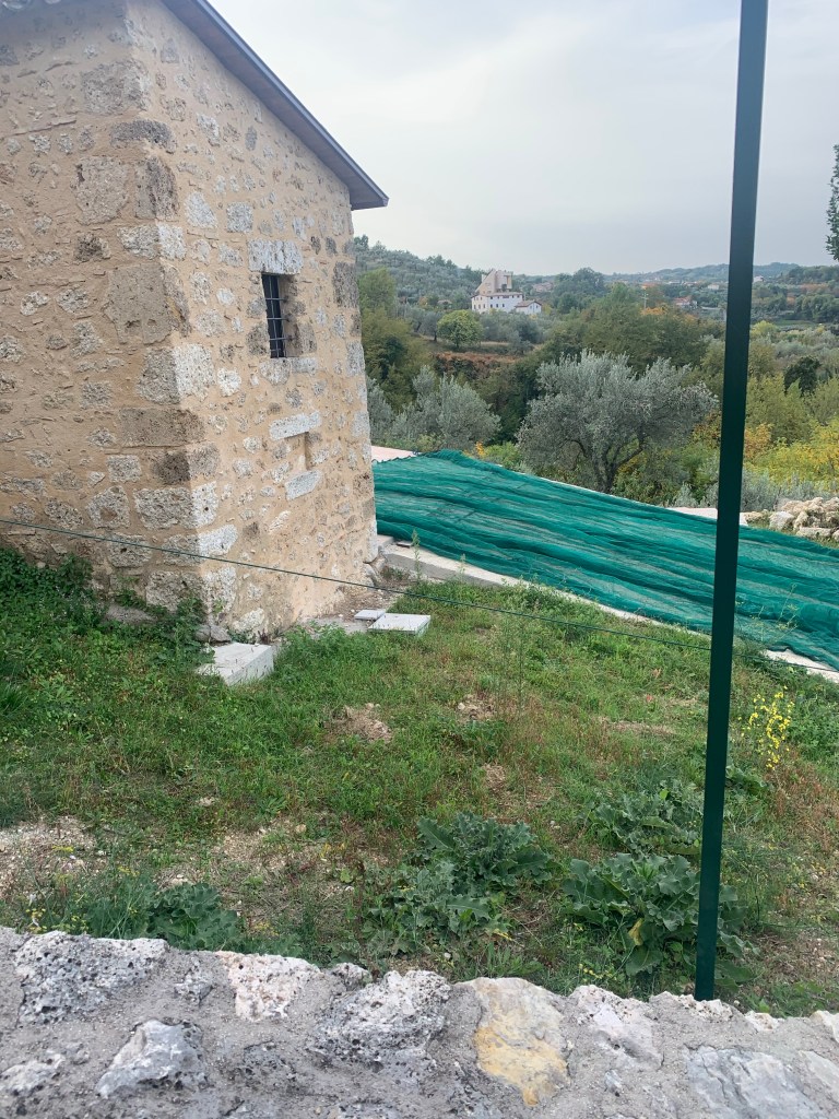 Arriving at 8am my daily commute went from 11/2 hours in London to about …. 40 seconds, so it was a good start! Once I arrived, I was met by our good friend Leonardo who is a local legend. When I arrived, the net that catches the olives was laid out down the hill and I was told the first job was to repair any holes in the net. The net is a vital part of the process as when the olives are falling from the trees you do not want them hitting the ground where they can be trodden on or simply wasted,this isn’t good …. or as our team like to say end of story!