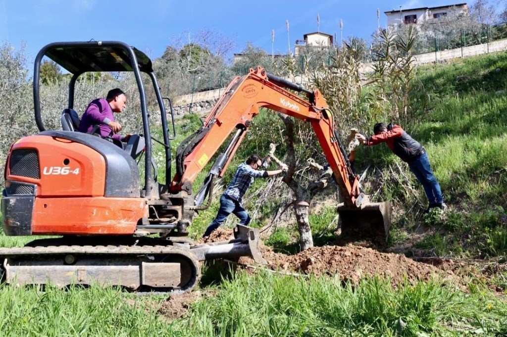 Replanting the olive trees in their new location ready for the next olive harvest: