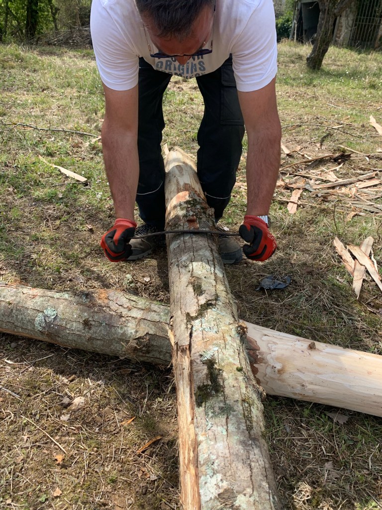 Once the area has been measured and marked out,using a measuring stick and string lines to create the rows in which the vines will grow, the posts are then installed and things start to take shape. The bark is removed from the posts by hand before the posts are inserted a few feet into the soil.